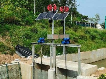 由太陽能光伏板和小型風(fēng)力發(fā)電機(jī)為蓄能電池組充電,電池組有BMS電池管理軟件管控,為永磁無刷直流電機(jī)的各類驅(qū)動(dòng)裝置供電,同時(shí)為視頻監(jiān)控,壓力、流量、液位傳感器,照明等供電